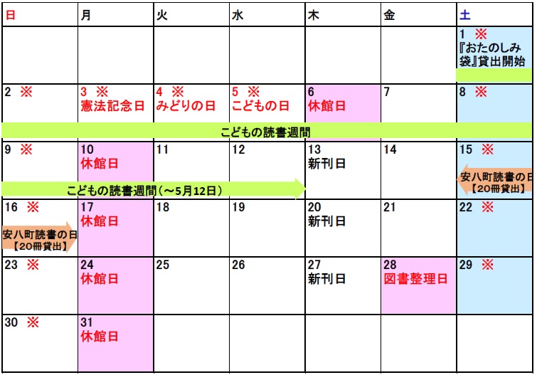 - 毎月第3土日は、『安八町読書の日』として【20冊貸出】を行っています。家族で読書をお楽しみください。