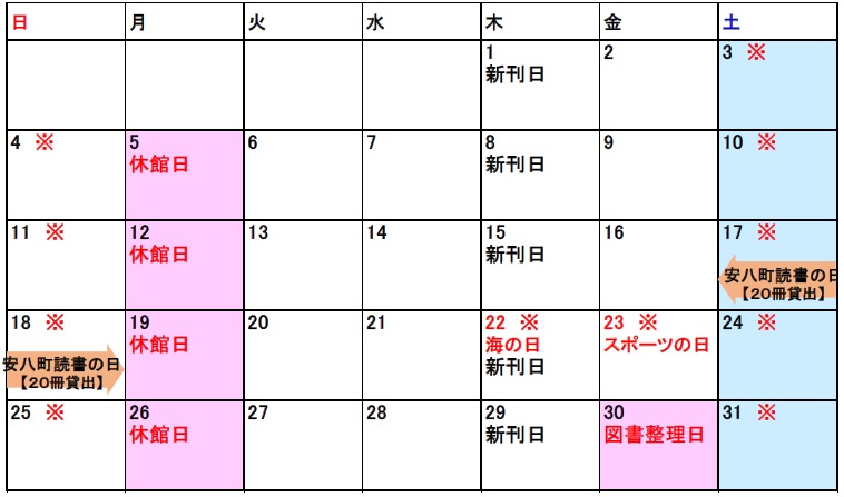 - 毎月第3土日は、『安八町読書の日』として【20冊貸出】を行っています。家族で読書をお楽しみください。