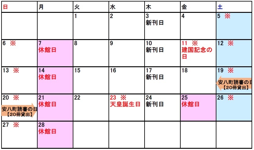 図書館行事カレンダー(令和4年2月)